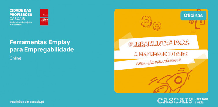 Oficina online para conhecer e experimentar as 4 ferramentas EMPLAY (jogo de tabuleiro, agenda interativa, app e manual para técnicos), criadas no âmbito de um projeto europeu Erasmus + para desenvolver competências de empregabilidade.
