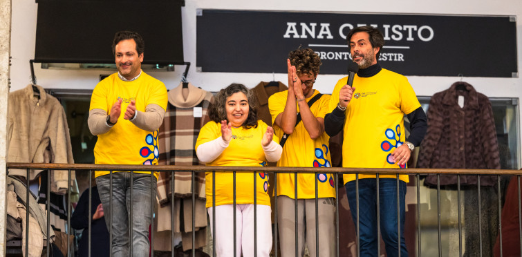O Dia Internacional da Pessoa com Deficiência foi assinalado hoje, 3 de dezembro, com muita animação no Mercado da Vila, em Cascais. A iniciativa, promovida pelo Conselho Local para a Inclusão em Cascais (CLIC), entidade membro da Rede Social de Cascais, reuniu cerca de 130 participantes de 8 entidades, entre instituições participantes e membros parceiros, num colorido flashmob que encheu o espaço de música, dança e sorrisos.
