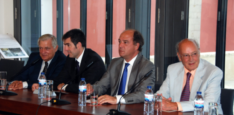 Legenda da foto: Miguel Ángel Matran (Presidente da Federação Internacional do CICOP), Fernando Clavijo (Alcaide de San Cristóbal de La Laguna), Carlos Carreiras (Presidente da Câmara Municipal de Cascais) e José Manuel Tengarrinha (Presidente do CICOP Portugal e do Instituto de Cultura e Estudos Sociais).